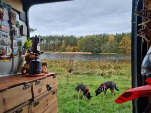 I nadal nie wiem jak to jest z tym van lajfem w białym drewnie i czystej pościeli z widokiem na ochy i achy? Ale przecież w Busie Pełnym Przygód nie ma nudy. Gdy jeszcze wczoraj montowaliśmy ze Staszkiem pawlacz, myślałam… no teraz to już będzie porządek! Nie sądziłam, że dziś będę jechać w środek lasu w okolicę Góry Śmierci pod Borne Sulinowo, gdzie zasięg gaśnie a noc i tajemnice lasu przejmują władzę. Gdzie od kilku godzin leżeli Sebastian i Trampek, którzy mieli wpaść tylko na kawę i spacer po Rosnowskim lesie… Ale los chciał inaczej! Bus Pełen Przygód osiadł w błocie zakopany. Pieski dzielnie go strzegły. A mi ostatnie 4 km przyszło przypomnieć sobie, jak to było z tymi nocnymi rajdami na orientację. Gdzie w trakcie spaceru odwiedziły mnie Duchy Bajkału, pomagając pokonać ostatnią drogę. Znaleźliśmy się po ciemku i bez zasięgu. I jeszcze na koniec ta niewiarygodna pomoc znajomych, siła internetu i pomoc nieznajomych doprowadziły w to miejsce… Z tuptających po głowie refleksji wyrwały mnie słowa.