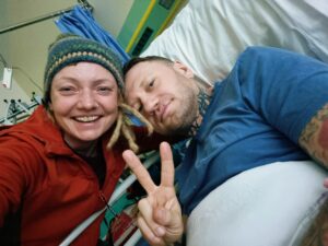 I tak już nie w lesie a w szpitalu Sebastian leżał na kozetce i choć wyglądał jak po armagedonie i najpewniej już na lekach nie tracił pozytywnego nastroju, ale oczy jakby trochę się szkliły… Ja stojąc obok, próbowałam jakoś rozsądkiem objąć tę sytuację, zastanawiając, co tu się właściwie wydarzyło w ciągu tych ostatnich kilku godzin?