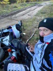Sebastian jednak nie żartował ani przez chwilę. Do tego leżał już jakiś czas w lesie, w miejscu całego wydarzenia, próbując jakoś wyjść z sytuacji. Poźniej dowiedziałam się, że w tym czasie próbował podnieść motocykl, czołgał się między przodem a tyłem Koguta, ściągnął bagaże… Nim do mnie zadzwonił, minęło około godziny od upadku, bo jak to stwierdził: