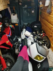 Od słowa do słowa udało się ustalić, że przyjaciel Ptaku będzie mógł odebrać i przetransportować Sebę… Mnie pozostało obserwować resztę wydarzeń z daleka. Jednak zanim to nastąpiło, czekała mnie jeszcze wieczorna trasa ze Szczecinka do Koszalina i kolejno wyrzucenie z Busa motocykli oraz bagaży pełnych rzeczy i przygód, przygotowanie niezamieszkałej od wielu miesięcy chaty na wizytę Gościa, odstawienie piesków i szybki teleport na Morze Północne.