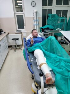 Nie można pominąć profesjonalnej opieki, jaką Połamaniec otrzymał na miejscu od przyjęcia po dzień wyjścia… Zarówno ekipa na SORze jak i lekarze byli bardzo pomocni, choć początkowo wydawało nam się, bardzo dziwne, że tak Go trzymają, skoro szybko wyjaśniło się, że złamanie nie było bardzo poważne i operacji nie będzie! Jednak z perspektywy czasu rozjaśniło się, że warto było leżeć te kilka dni w bezruchu pod okiem lekarzy.