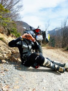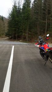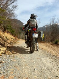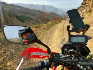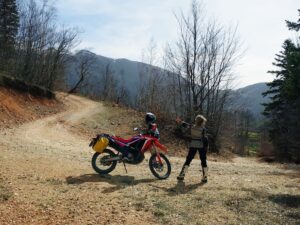 To nie pierwszy raz, gdy w trochę wyższych partiach gór, gdzie drogi są kręte i nieoczywiste GPS potrafił wariować. Jednak, kiedy po zjeździe z wąskiego asfaltu wpadłam na bardzo atrakcyjną, ewidentne nowopowstałą szeroką dwupasmówkę, byłam równie zdziwiona, co i ta droga, na której się znaleźliśmy. Wyglądała jak jeszcze nieoddany do użytku odcinek drogi. Równie niespodziewanie jak się pojawiła, zniknęła klasycznym odcięciem asfaltu. I tak już dawno minęłam się z wytyczoną wcześniej trasą, ale pewien most na rzece bardzo mnie zachęcał, żeby zerknąć co się schowało za zakrętem. A schowały się… Piękne szutry i kamieniste drogi biegnące zboczem góry, które doprowadziły mnie do wcześniej zaplanowanej trasy.