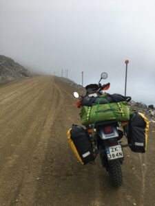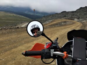 Tron (1666 m n.p.m.) zdaje się dość popularny wśród motocyklistów (znajduje się na trasie TET). Ciężko powiedzieć co spowodowało, że schowany za kurtyną z mgły pozostał pusty i samotny. Może poranne godziny, środek tygodnia, niepewna pogoda albo wspomniana mgła zniechęciła innych podróżnych?