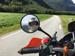Norwegię miałam przyjemność zwiedzić jeszcze w czasach covidu i to będzie świetny wstęp do serii „Strzępków z podróży”, czyli historii tego, co właściwie zostaje z podróży po czasie. Nie jechałam w całkiem nieznane miejsce. Do wycieczki zmotywowała mnie praca, którą ówcześnie wykonywałam w Norwegii. Postanowiłam jedynie zmienić środek transportu i, zamiast samolotem z Gdańska do Trondheim, pocisnąć motocyklem z Koszalina bezpośrednio Selbu.