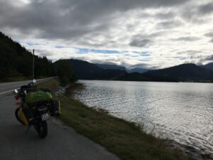 W Trondheim zameldowałam się kolejnego dnia też późną nocą, by w poniedziałek około godziny 7:00 znów wrócić do Selbu i tym razem to miejsce pożegnać na długo. Spakowana i już na KLE i uderzyłam na południe Norwegii przebijając się przez deszczowe chmury.
