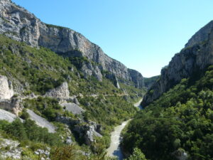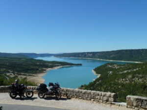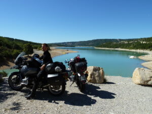 Jechaliśmy, jechaliśmy i pokonaliśmy trasę napoleońską poprzez Sisterson, Gap, Crops, La Mure do Grenoble. Krajowa, dość słynna droga RN-85 jest malownicza i urocza, że nie dało się ot tak, przejechać jej bez przystanku. Co chwila przerwa, nasycenie widokami, kilka zdjęć i znów w drogę. Dłuższy przystanek zrobiliśmy nad i to dosłownie nad jeziorem Lac de Sainte-Croix. Tutaj zadzwoniłam też do domu, by podzielić się wieściami jak sympatycznie włóczy się tymi francuskimi drogami i to w doborowym towarzystwie.