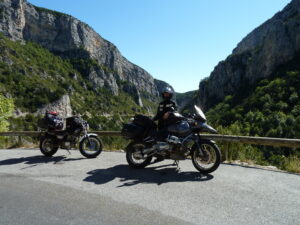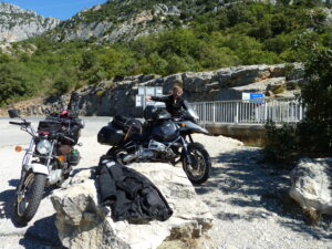 Castellane to całkiem interesująca miejscowość u podnóża skał. Nazwa tejże miejscowości też nie jest przypadkowa, bo na szczycie jednej z owych skał wzniesiono kapliczkę. Widok nieziemski trochę tajemniczy i mistyczny. Znalezienie pola namiotowego okazało się prostsze, niż mogło nam się wydawać, bo trafiliśmy na nie dokładnie w centrum owej wioski. Szukając miejsca na rozbicie namiotu, wpadliśmy na innych podróżników GS-em. Małżeństwo z Niemiec. Biegle mówili po angielsku, więc wiadome było, że wieczór spędzimy z nimi. A tematów do rozmów nie zabrakło… Po wieczornej integracji przy motocyklach przyszedł czas na regenerację sił i sen.
