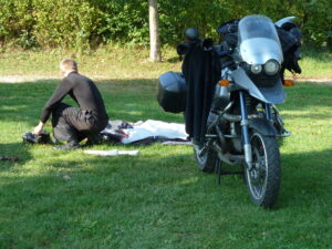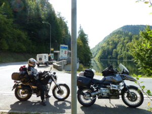 Bo z Irkiem spędziliśmy pięć intensywnie motocyklowych dni. W miarę zbliżania się ku północy nie chciało się rozstawać. Tak właściwie, to w trakcie tych kilku dni on też pozmieniał swoje wyprawowe plany. Moment rozjazdu odwlekaliśmy do granic możliwości. Po prostu dobrze się razem jechało, wieczorem gaworzyło o życiu i śmierci a rano znów ruszało w drogę. Miła odmiana po wcześniejszych przygodach. Gdzieniegdzie w myślach, pojawiały się pomysły na kolejne wspólne wyjazdy. Zdaję sobie sprawę, że nie będą takie jak ten, ale bez wahania wiem, że jeszcze gdzieś z Irkiem pobłądzę po świecie… (spotkaliśmy się jeszcze raz w 2017 roku w Adlizgraben – dopisek z 2025 roku)
