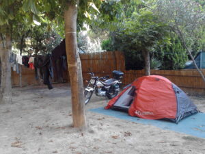 Wspomniana rezerwa, zmęczenie oraz mrok sprawiały, że tego dnia na prawdę mieliśmy dość. Wpadliśmy do ośrodka, ale… okazał się zamknięty. Właściwie dziwne to było, bo za płotem stało mnóstwo camperów. Wreszcie jeden z gości otworzył nam bramę. Jak się okazało właściciele są, ale już śpią. Bramy są zamykane po 22 i po tej godzinie goście nie są przyjmowani. Ci, którzy są zameldowani otrzymują klucze w formie karty, by móc swobodnie wchodzić i wychodzić za bramę. Te ograniczenia oraz podejrzany luksus trochę nam śmierdziały drożyzną, ale nie mieliśmy wyjścia… Podjęliśmy decyzję, że zostajemy tu, a rano będziemy tłumaczyć właścicielom ośrodka skąd się tu wzięliśmy i pytać o cenę. Tym razem dość szybko padliśmy do namiotów, choć standardowo nie obeszło się bez wieczornych rozmów.