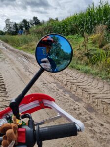 O tym, że Holandia jest rowerowa, nie trzeba wspominać, ale o tym, że wzdłuż wyraźniej ścieżki rowerowej schowanej w polach między wioskami ciągnie się piaszczysta motocyklowa autostrada już warto! Czyli jednak można połączyć ścieżki i wycieczki rowerowo-motocyklowe. Taki mały kraj, a jednak udało się wygospodarować miejsce dla wszystkich!