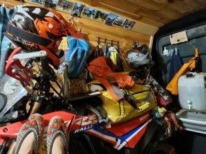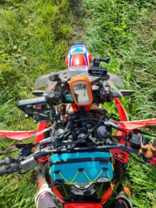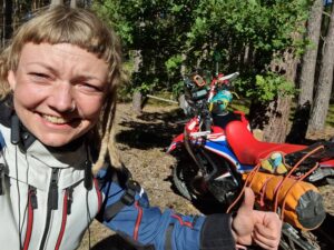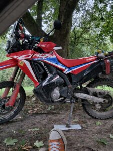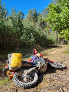 Jakiś czas temu ustaliłyśmy z Cyferką, że wywracać się nie będziemy. Z prostych przyczyn wywrotka zawsze niesie za sobą jakieś mniejsze lub większe konsekwencje. Od awarii po kontuzje. Chociaż zdaje się, że już elementy, które potencjalnie mogłyby odpaść albo się złamać odpowiednio się wygięły przy poprzednich wywrotkach i ryzyko jest niewielkie. Natomiast nigdy nie wiesz, czy np. nie wylądujesz jakoś niefortunnie pod motocyklem albo w coś nie uderzysz. Problem może jeszcze się pojawić jeśli miałaby leżeć na prawej stronie, bo np. jakiś syf może wejść w rolgaz, co już jest kwestią bezpiecznej operacji gazem. Inna sprawa to oczywiście strata czasu na doprowadzenie majdanu do ładu zamiast na przykład kawa w plenerze. I choć dla kogoś, kto nie jeździ motocyklem, może to zabrzmieć abstrakcyjnie, to, o ile nie ma żadnych dodatkowych kontuzji, samo podniesienie akurat CRF 300 Rally nie jest problematyczne. Przy odrobinie techniki i oczywiście jakiejś tam masie mięśniowej, która niewątpliwie jest przydatna, można ją sprawnie sprowadzić do pionu. No ale, po tym krótkim wstępie do brzegu…