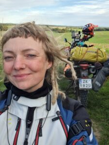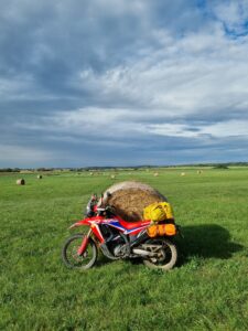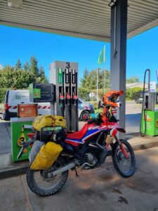 Rano już standardowo pakowanie i ogarnięcie na kolejny dzień podróży. Jeszcze kawa, śniadanie i choć nie pakowałam namiotu, wcale nie udało się ruszyć wcześniej niż zwykle. Żeby uzupełnić paliwo, musiałam też zjechać z trasy i nadrobić łącznie 20 km, ale wolałam nie ryzykować i sprawdzać ile faktycznie byłyśmy w stanie ujechać z Cyferką na jednym baku.