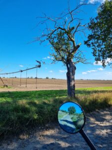 Granicę minęłam około 170 kilometrów później w okolicy Bourtange, choć jadąc autostradą czy krajowymi drogami teoretycznie powinnam była już być na miejscu docelowym. Z Cyferką jednak skutecznie omijałyśmy główne drogi na tyle, ile to było możliwe. Gdzieś w międzyczasie poszukiwałam stacji, żeby nie tankować na ostatnią chwilę, no ale jechało się tak przyjemnie, że no jeszcze kawałeczek… Gdzieś tam przy robieniu zdjęcia zauważyłam wiadomość od nieznajomego na Messengerze. Nie mam w zwyczaju odczytywać takich wiadomości, a tym bardziej w trasie, zostawiłam sprawę…