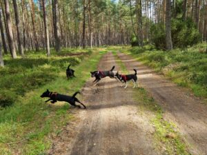 Minęłam już most nad Odrą z Schwedt do Krajnika Dolnego i dalej znanymi drogami, trochę na leniucha teleportowałyśmy się ostatnie kilometry pod Golczewo. Miłe przywitanie u przyjaciół, kąpiel, wieczorne ognisko a rano pyszne śniadanie z kozim serem własnego wyrobu. Później już klasyczna eskorta Kuby w stronę Koszalina. Pakowanie Cyferki i piesków do Busa i jeszcze tego samego wieczoru całym pakietem zameldowaliśmy się w Rosnowie Trochę czasu minęło od ostatniej wizyty na dzielni. Od startu minął ponad miesiąc, zaskoczył fakt, że nadal pierwsza zatoka jest obstawiona przyczepami. Zazwyczaj na koniec września teren pustoszał. Ale nie tym razem… nasze jesienne miejsce było zajęte. Może to też kwesta weekendu? Bus Pełen Przygód dojechał tu w sobotę po południu. Nie pozostało nic jak zaparkować w innym dostępnym miejscu i sprawdzić, co od ostatniej wizyty wydarzyło się w ulubionym lesie, za 3 dni znów powrót do Holandii…
