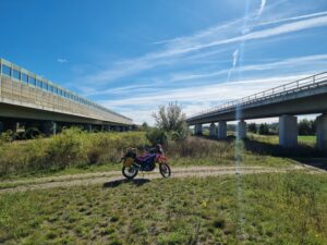 W kolejnych kilkudziesięciu kilometrach dało się odczuć, że zbliżamy się na wschód, bo o ile początek trasy jeszcze przy Bremen był głównie asfaltowy kolejne godziny drogi a przede wszystkim nasza odkryta tajemniczna granica na rzece Elbe wyraźnie pokazały, że z każdym kilometrem znalezienie ciekawych skrótów będzie łatwiejsze.